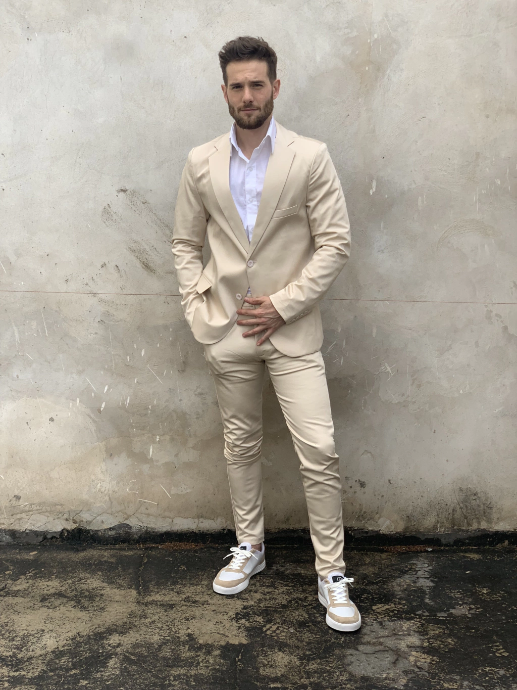 EL AMBO ES UN CONJUNTO DE PANTALON Y SACO , EL PANTALON ES SKINNY(CHUPIN) ES ANGOSTO EN LA BOTAMANGA , MIENTRAS QUE EL SACO ES SLIM FIT , AL CUERPO.